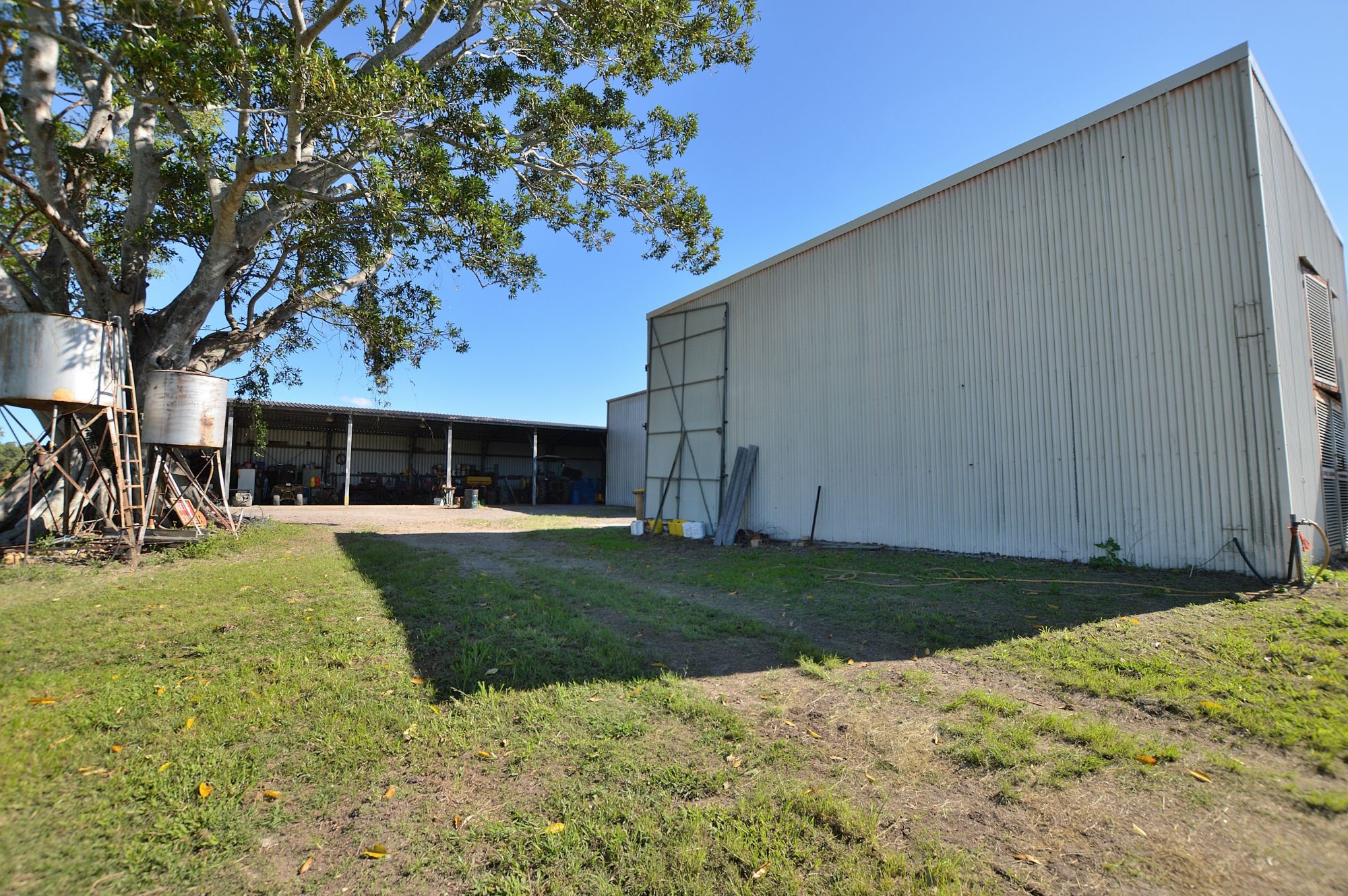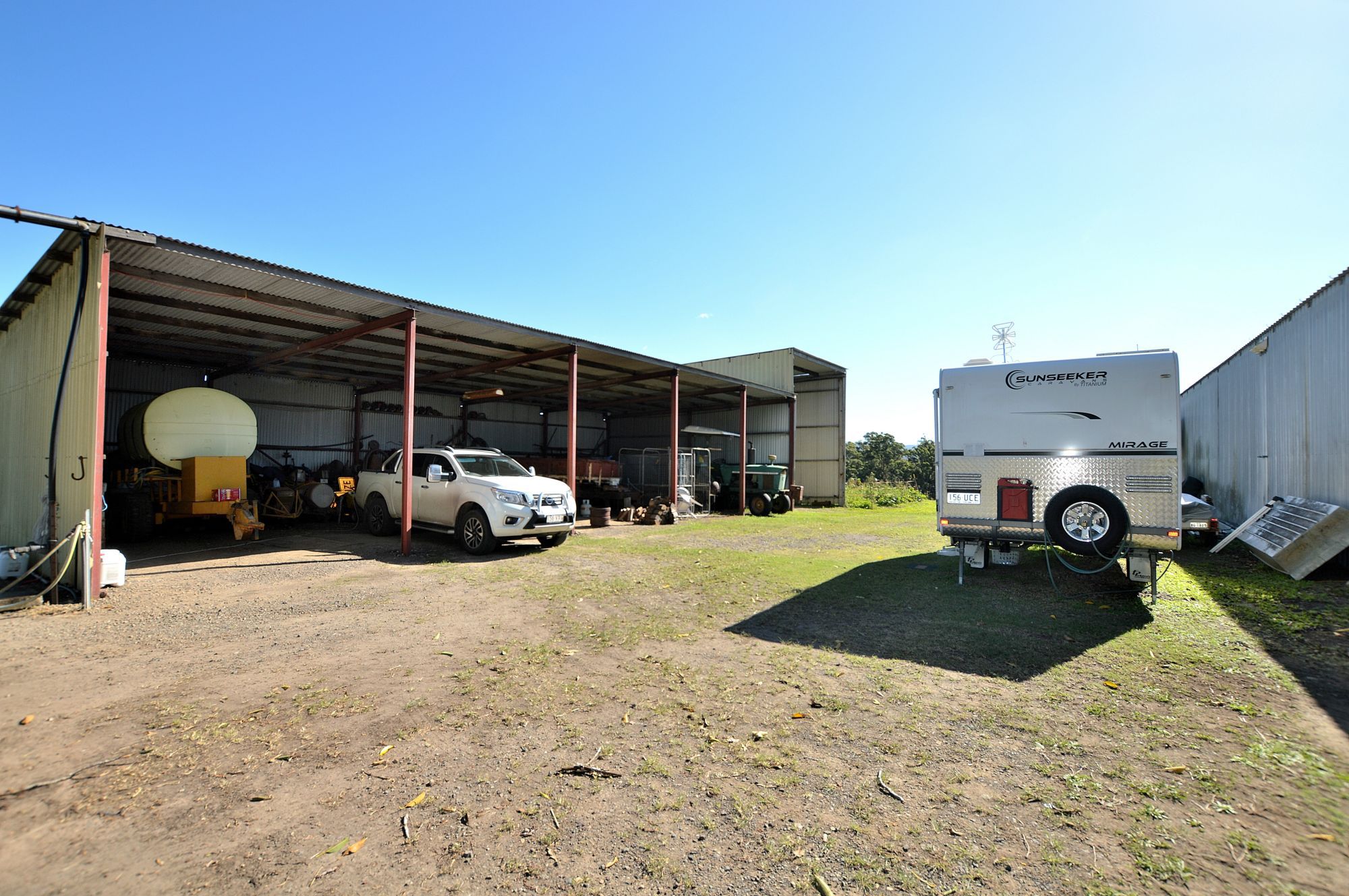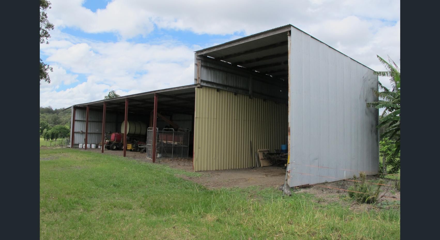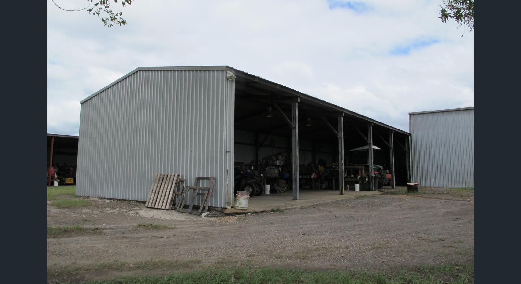 - 3 large machinery sheds (12 bays in total)