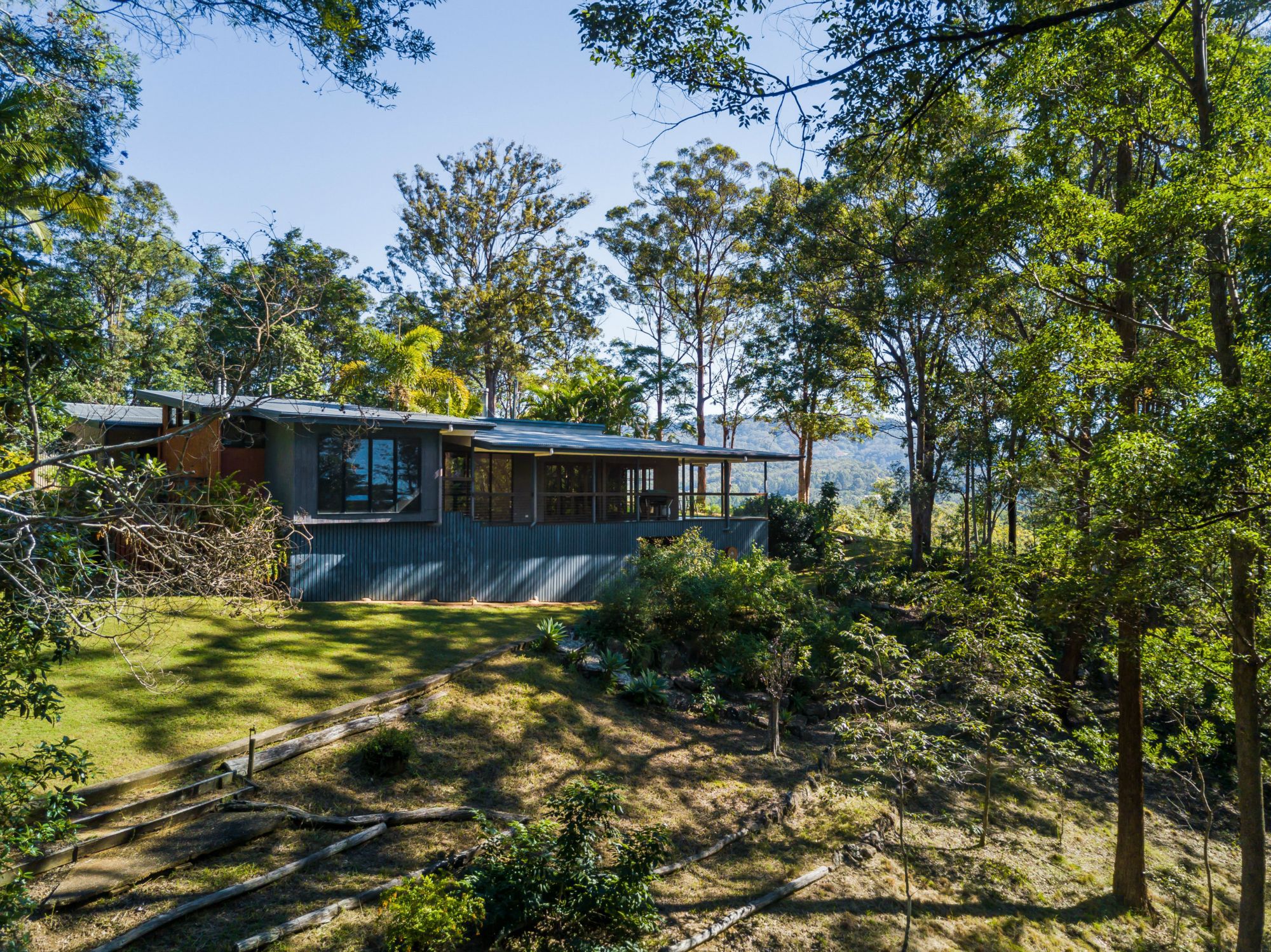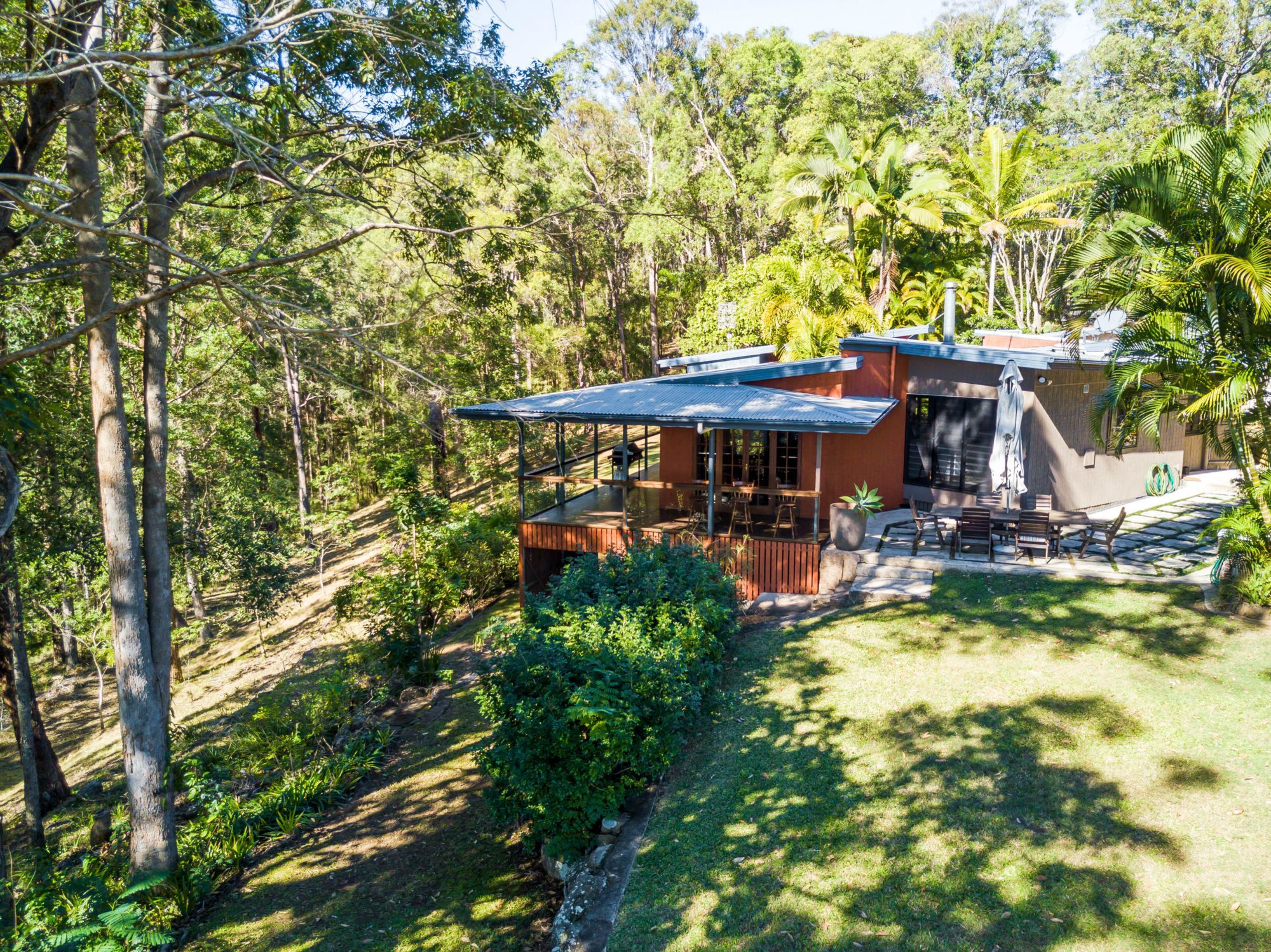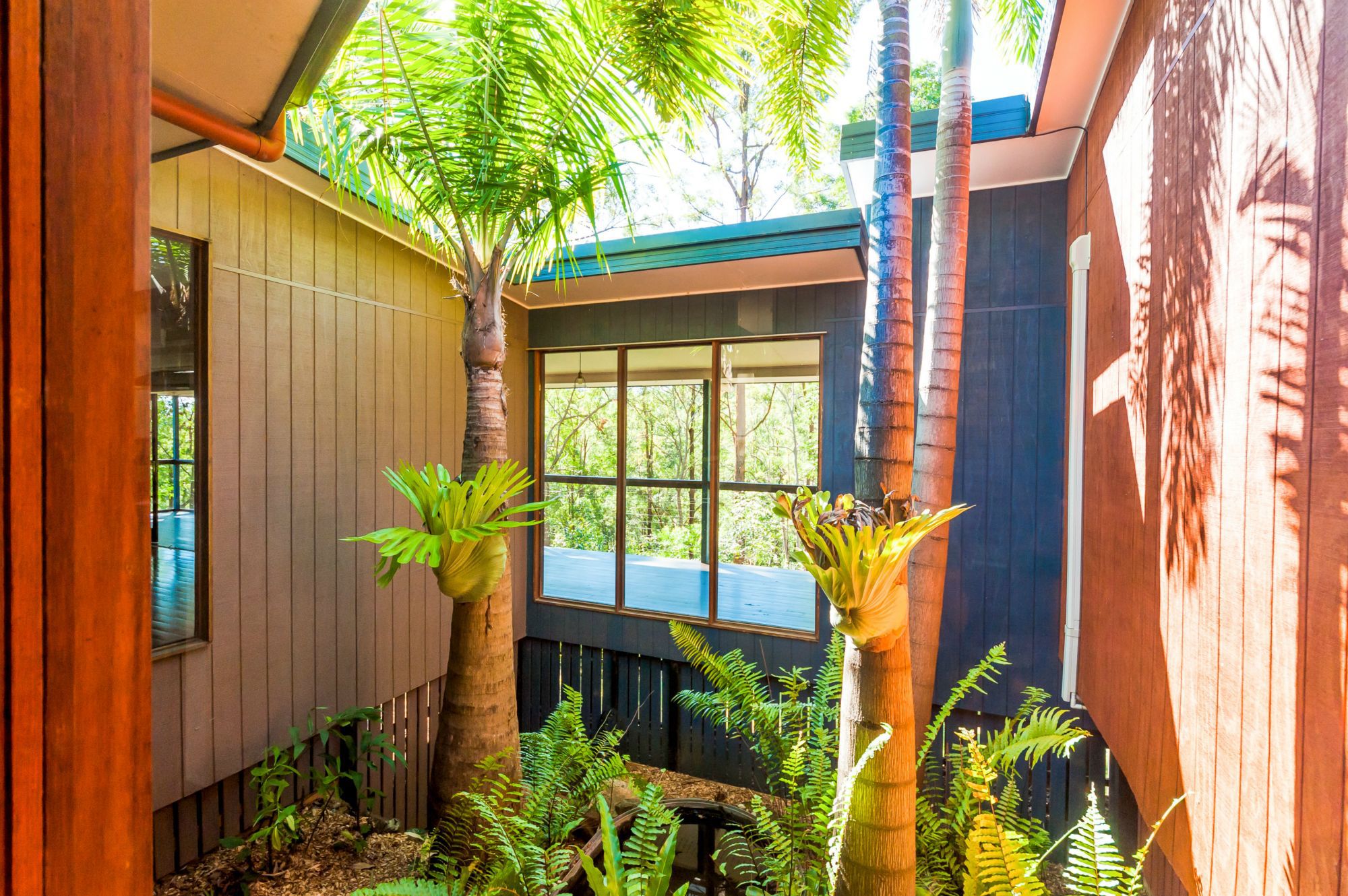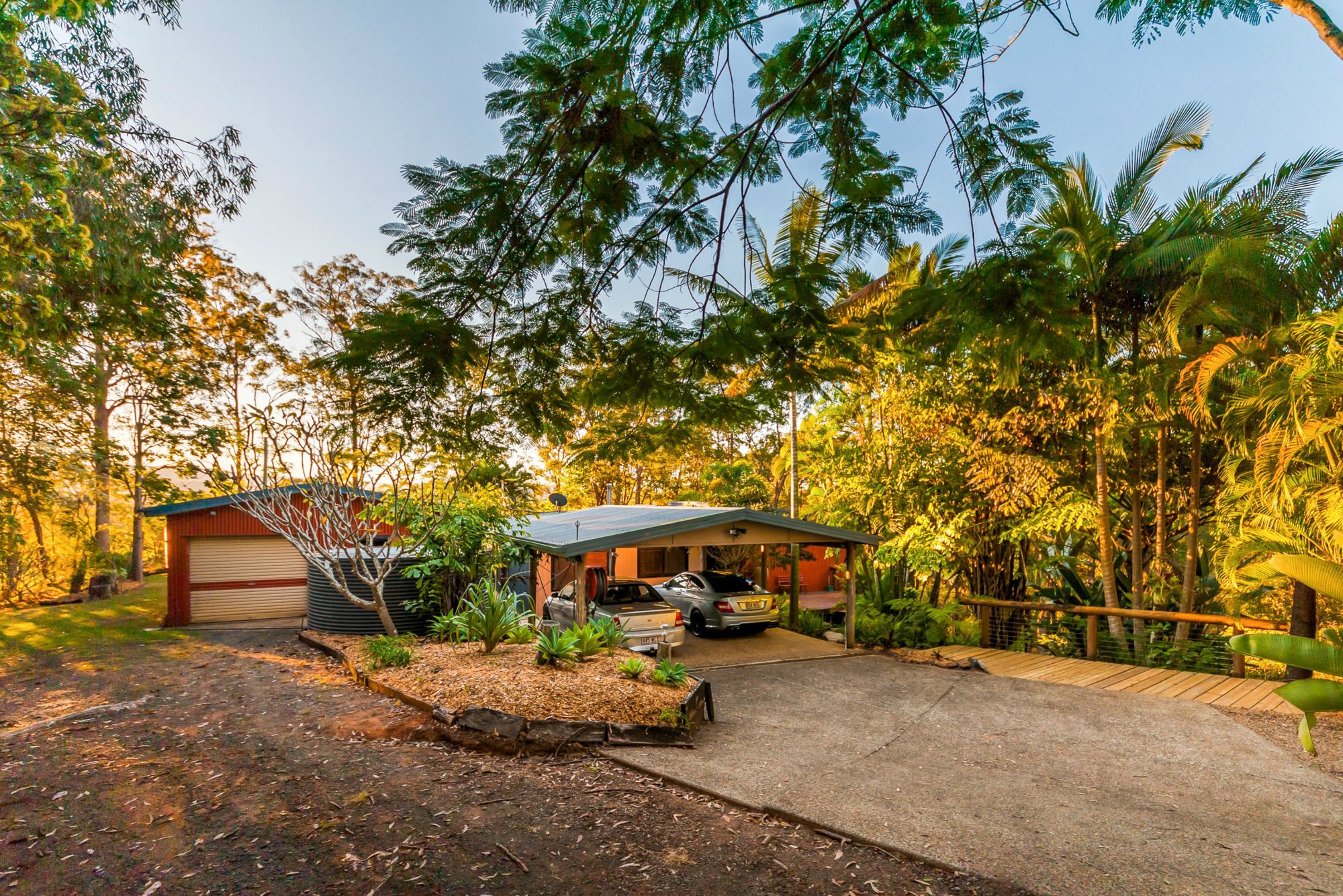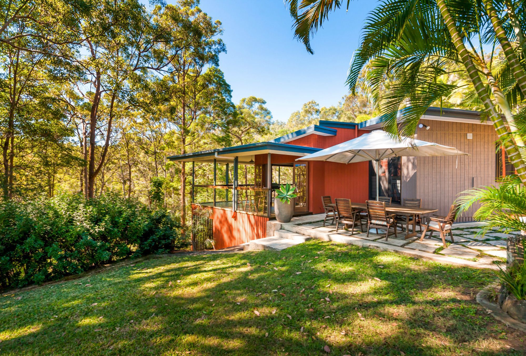 Privately positioned, unique architecturally designed home in a pristine natural bushland setting with views to the Montville Ranges and within a 5 minute drive from Palmwoods and 20 minutes to the beach.