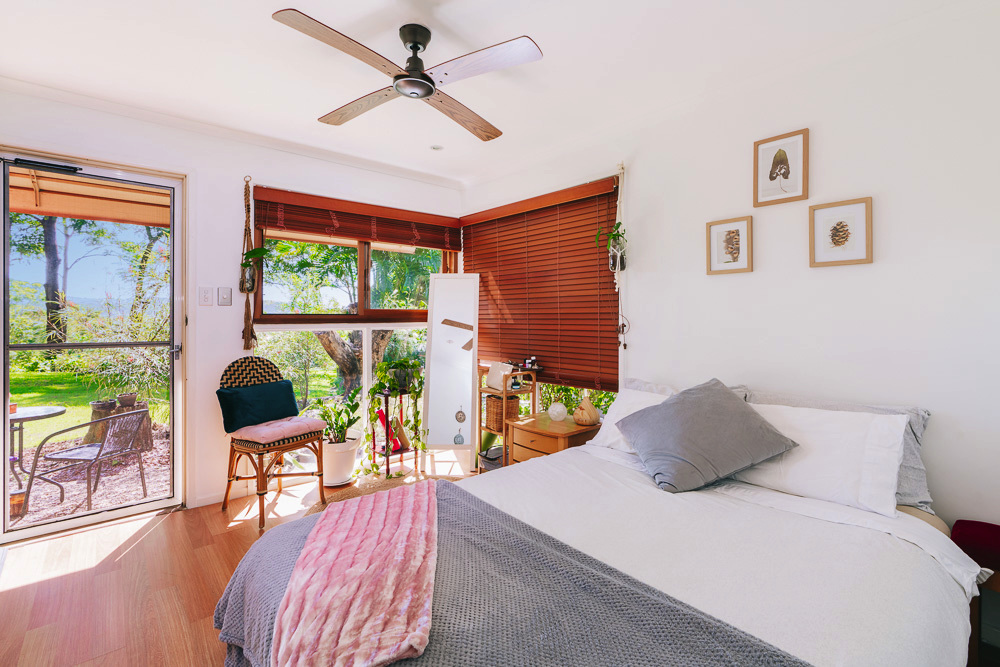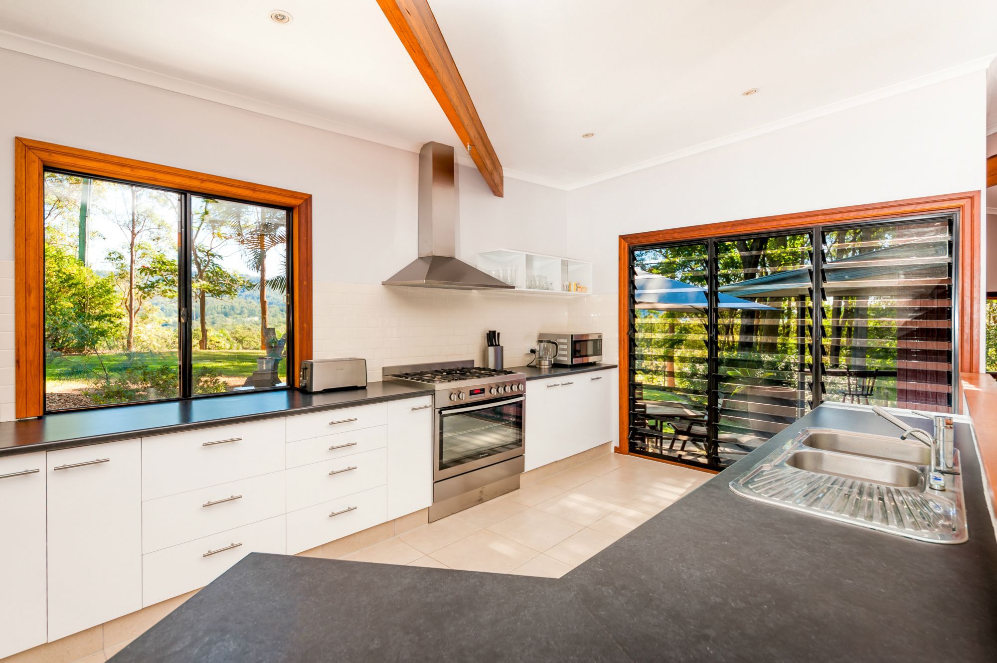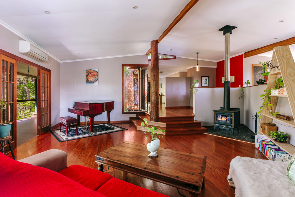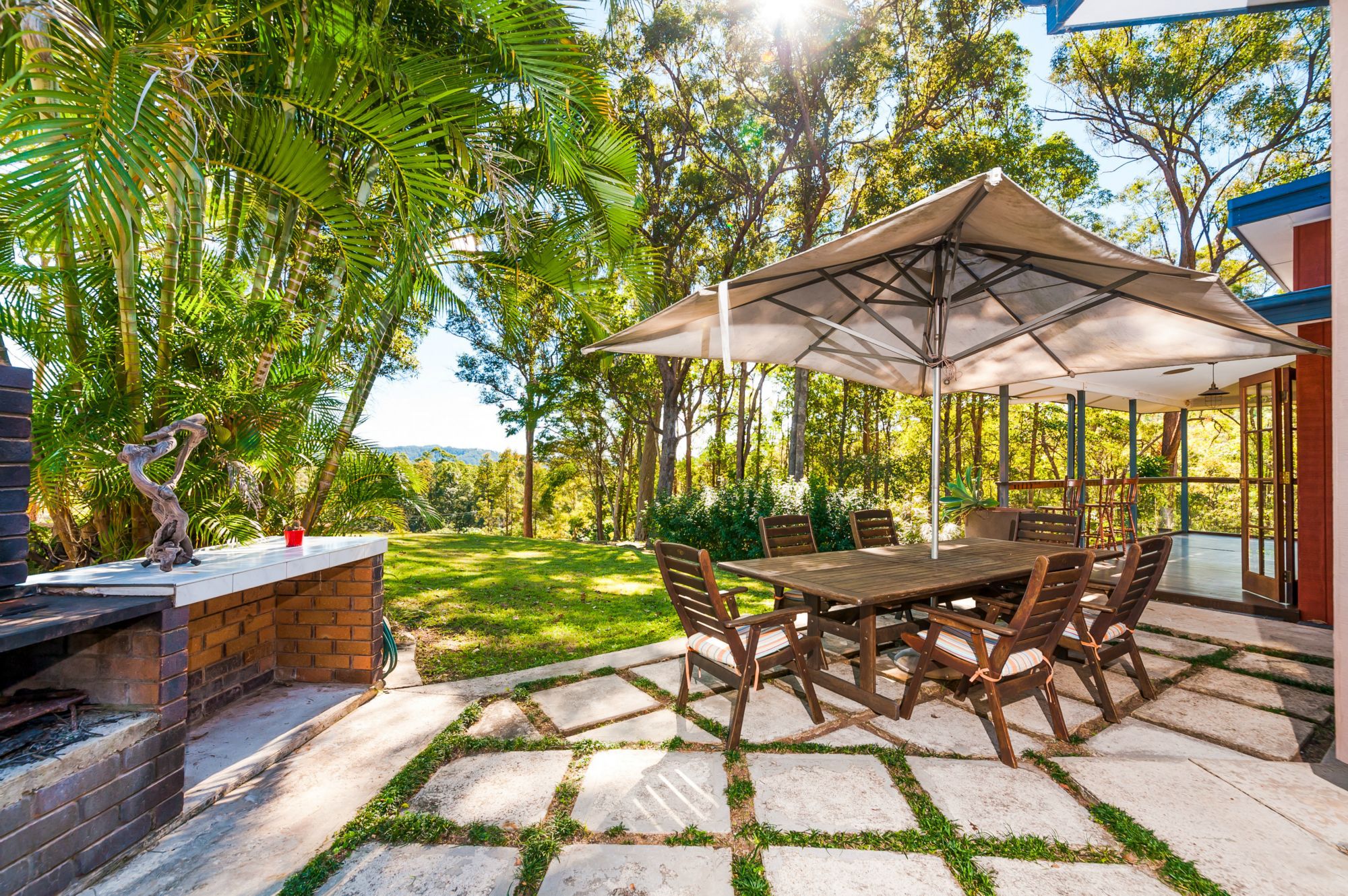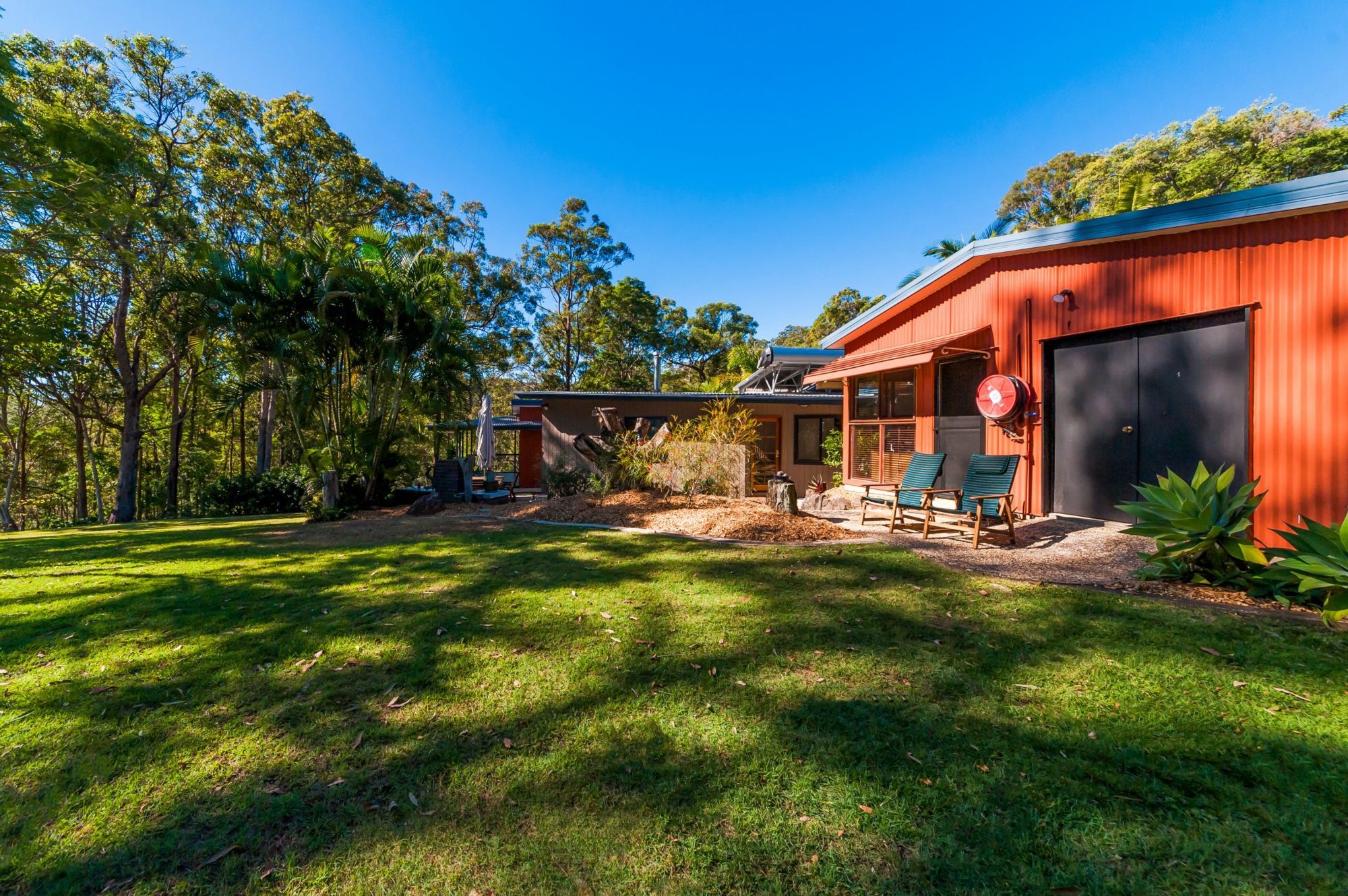 Privately positioned, unique architecturally designed home in a pristine natural bushland setting with views to the Montville Ranges and within a 5 minute drive from Palmwoods and 20 minutes to the beach.