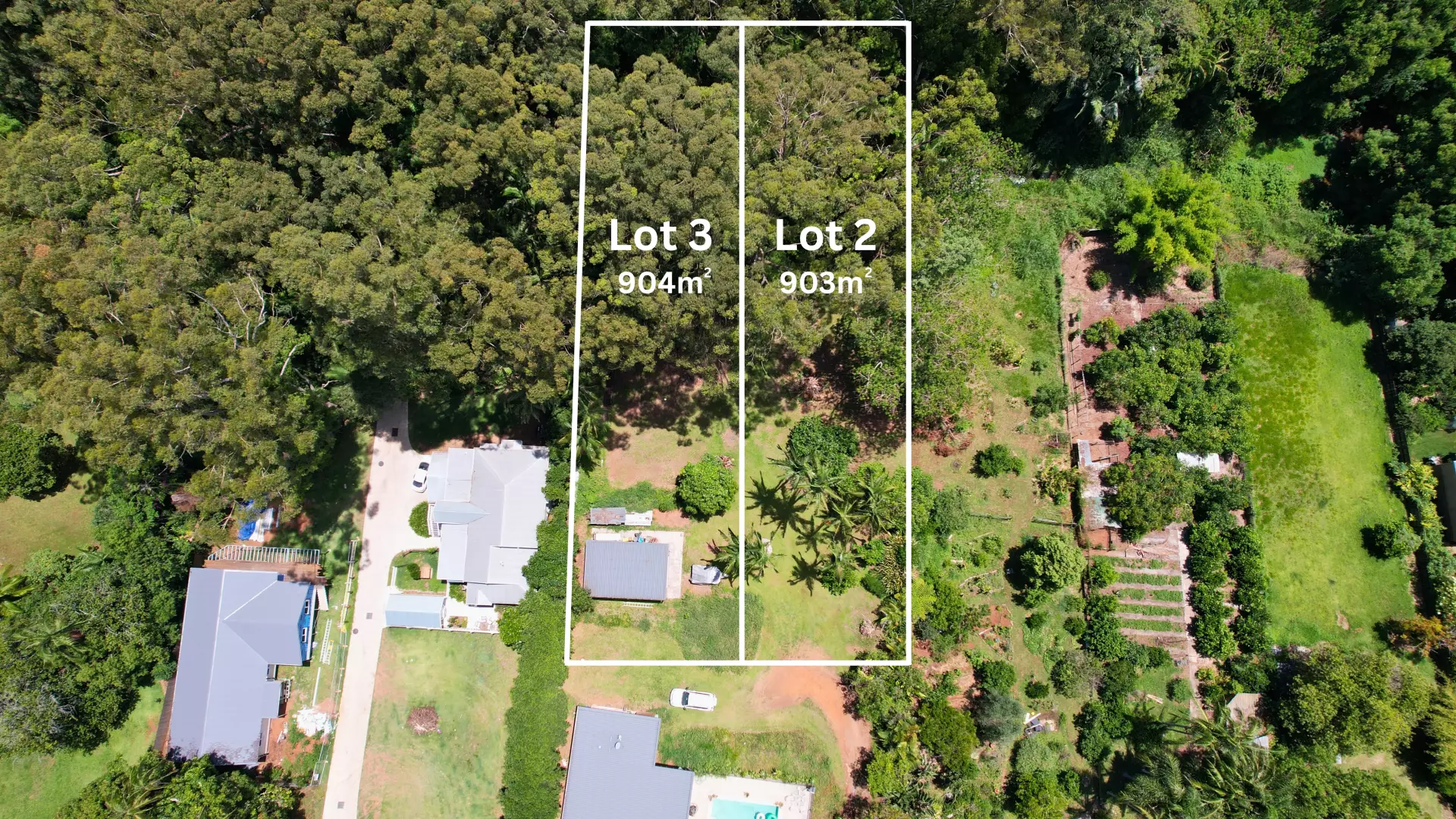 • Block 1 – 903m²: A generous parcel of land surrounded by native trees and a peaceful creek outlook. This block provides the perfect blank canvas to design and build a home that embraces its natural setting while staying connected to the heart of Palmwoods.
